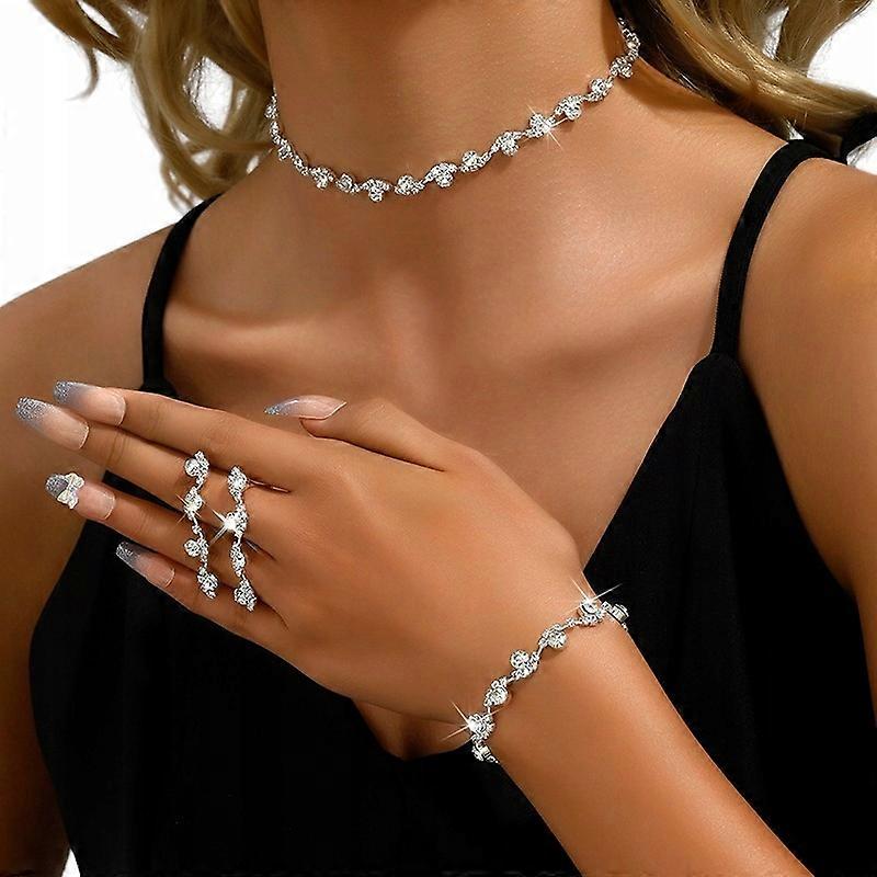 Set Earrings Necklace Bracelet Elegant Silver Zircons Crystals