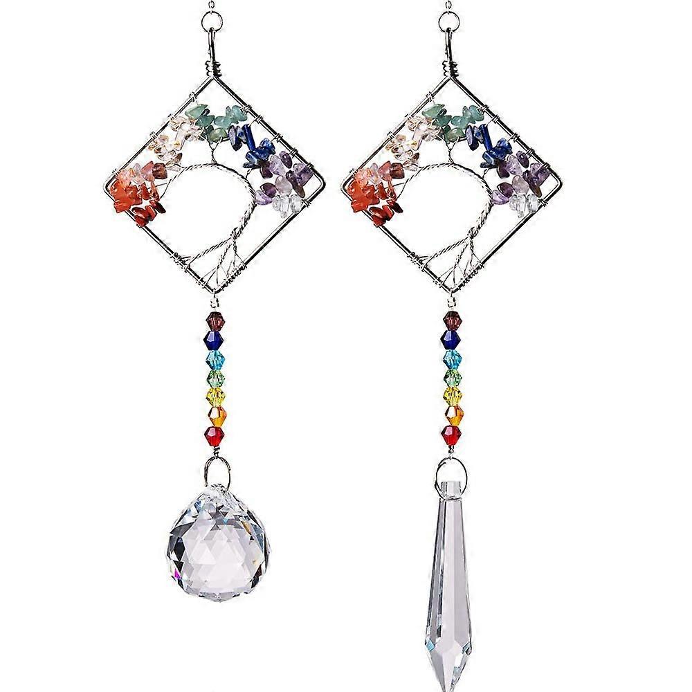 Set 2 Chakra Stone Suncatcher Crystal Glass Ornament Rainbow Maker Home Decor