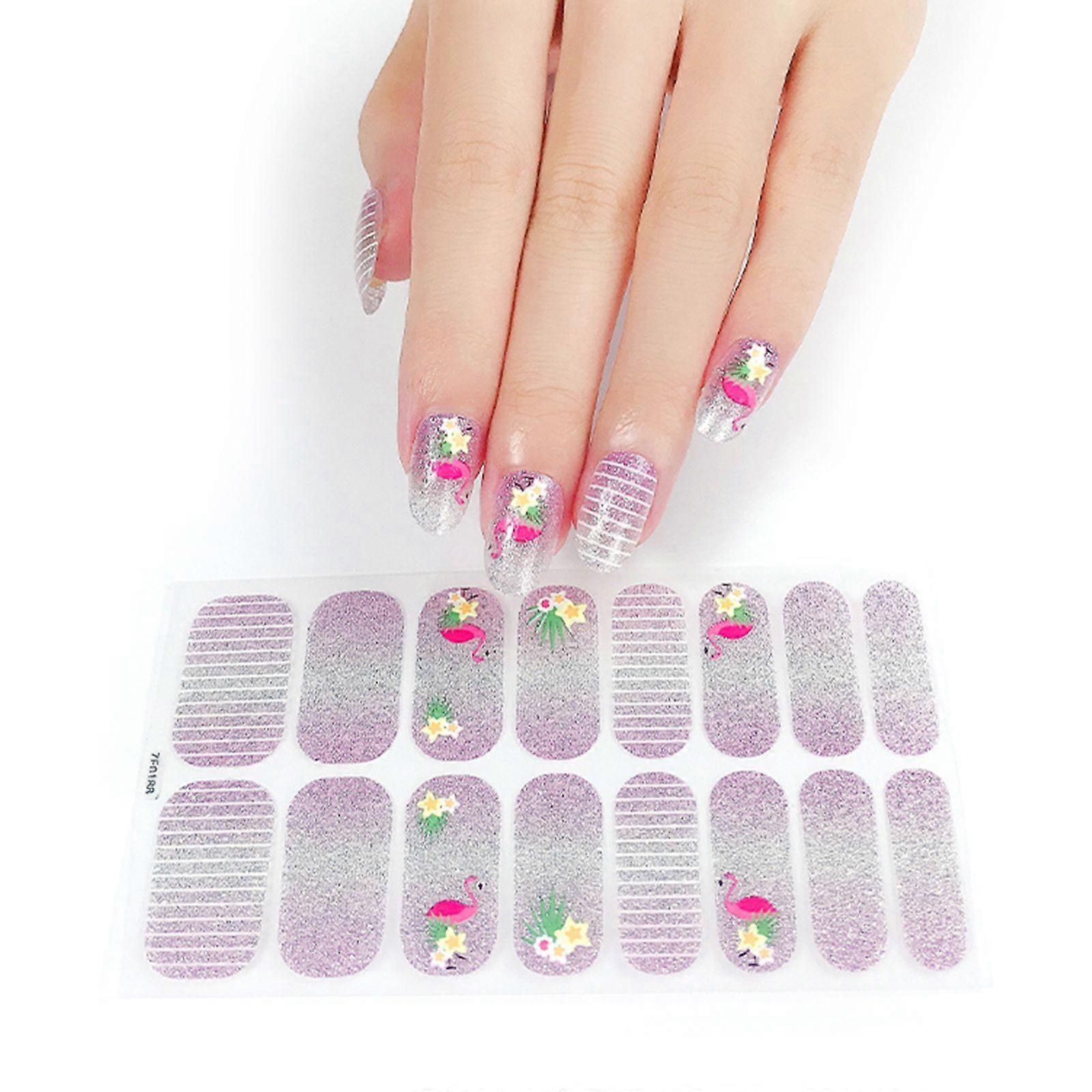 Semi Cured Gel Nail Polish Strips Glitter Cow Pattern Gel Nail Stickers