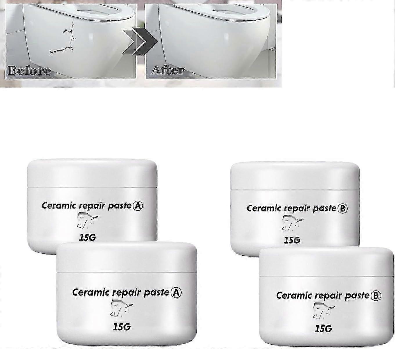 Wide range of applications: it can be used to repair scratches, dents, cracks, worn parts and holes on any ceramic surface; also suitable for fibreglass, stone, plastic. No trace of cracks: Fill all cracks, broken edges and holes with it! Once dry, it blends well with your tiles without a trace of cracks! How to use: Mix paste A and paste B in a 1:1 ratio (add more pigments if the surface to be repaired is not white). Apply the mixture to ceramic cracks or holes. Scrape off excess to obtain a flat surface. Allow it to dry for 24 hours. Two cups of paste in the package: It comes in two jars, providing you with repairing power and enhanced curing power. Doubling the fixing power makes your ceramics even stronger and more durable than before! Easy to use: the operation of the repair paste is simple, one person can complete the repair, no need to replace tiles, saving time and effort, and easy to use.