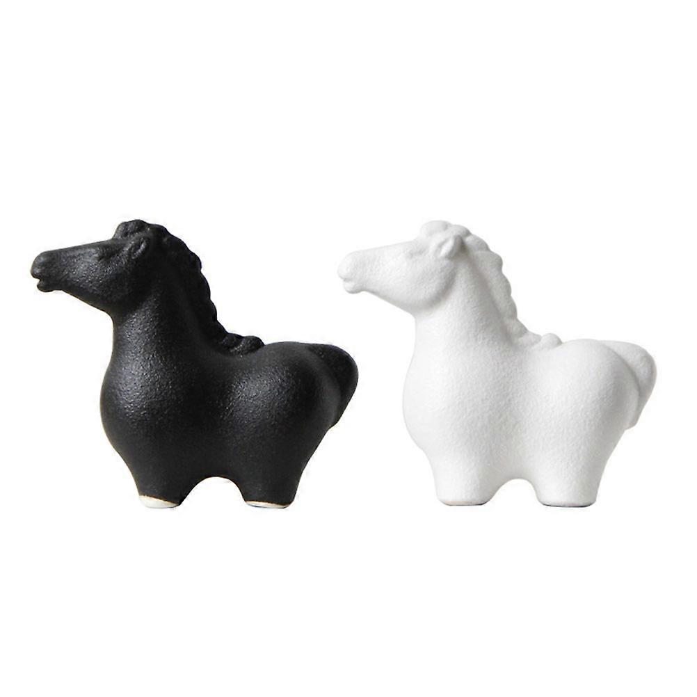 Ceramic Craft Figurine Horse Shaped Statues Indoor Desktop Decor Black 11x4.5x9.5cm 2Pcs