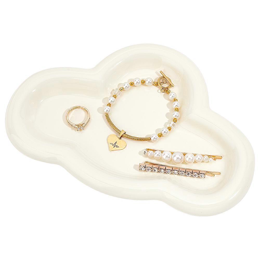 Ceramic Jewelry Tray Cloud Trinket Dish Ring Holder Dish Decorative Tray Irregular Trinket Plate Catchall Organizer for Aesthetic Home Entryway Decor