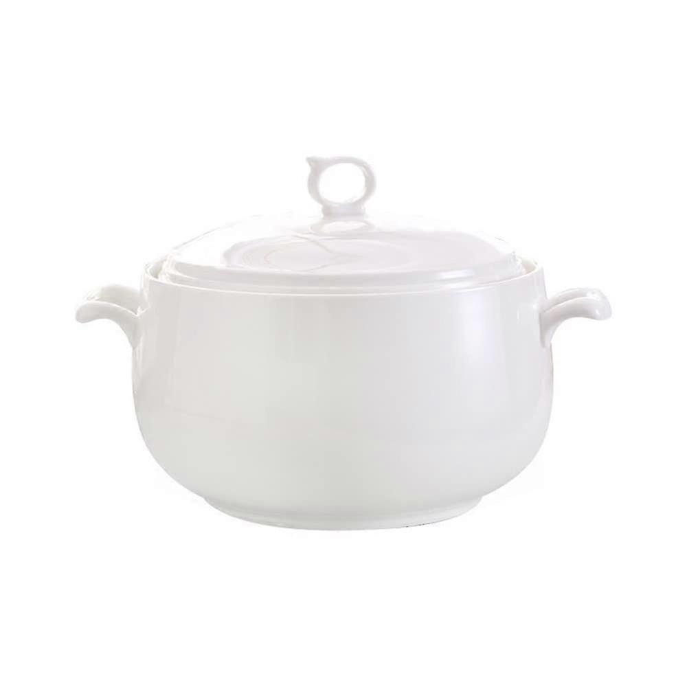 Ceramic Soup Tureen 3 Litre With Lid, Porcelain Serving Dish, Double Handles, Microwave & Dishwasher Safe, Pure White