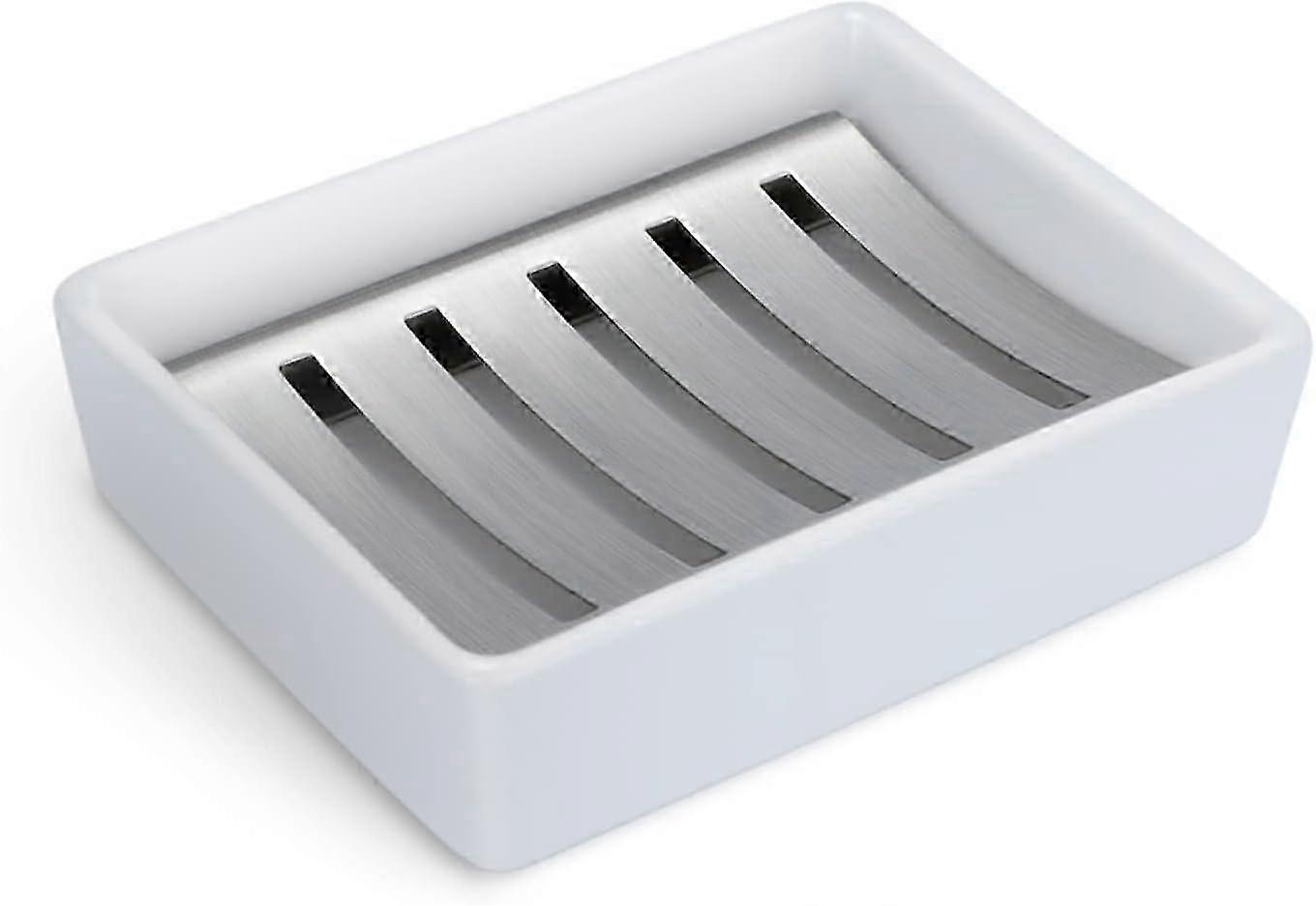Ceramic Soap Dish, Stainless Steel Soap Holder, Bathroom Soap Tray with Drainage