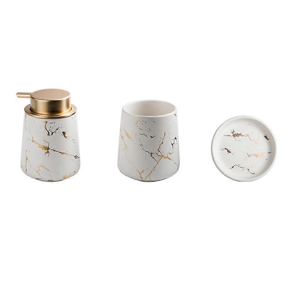 Ceramic Bathroom Accessories Home Hotel Lotion Dispenser Bottle + Rinse Cup + Soap Dish
