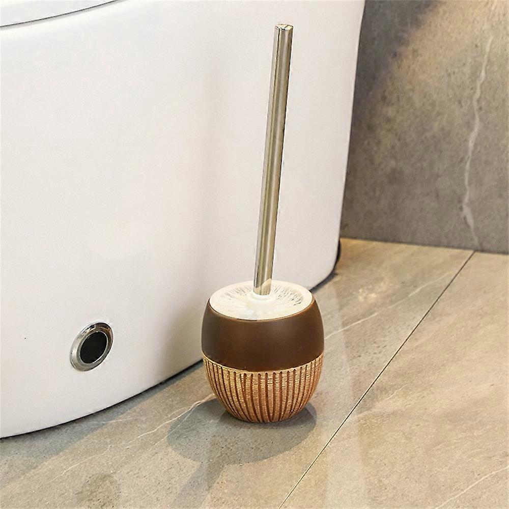 Ceramic Base Toilet Brush and Holder Set Stainless Steel Long Handle Rotating Head No Dead Angle Cle