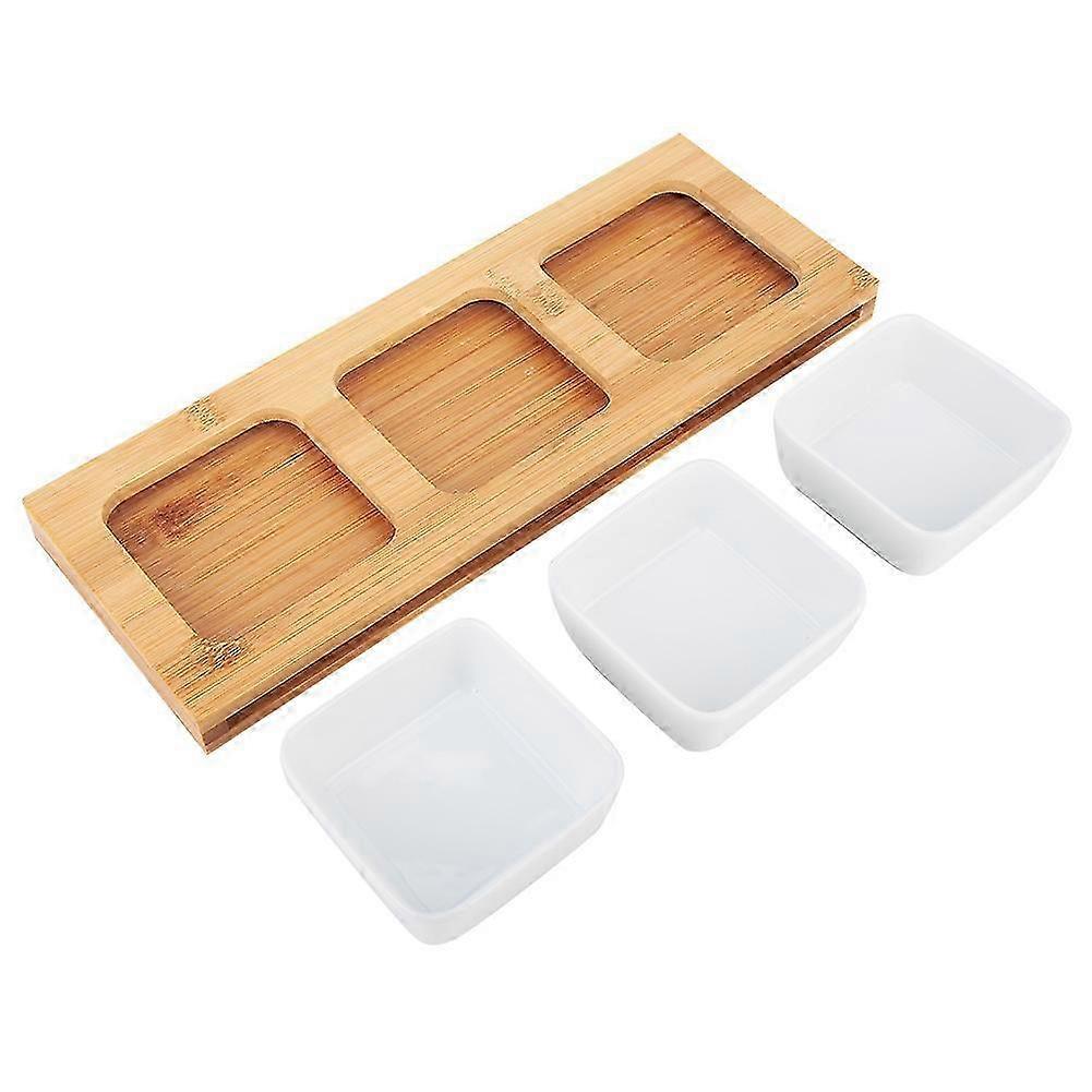 Ceramic Appetizer Plate with Bamboo Tray for Fruits Nuts Desserts