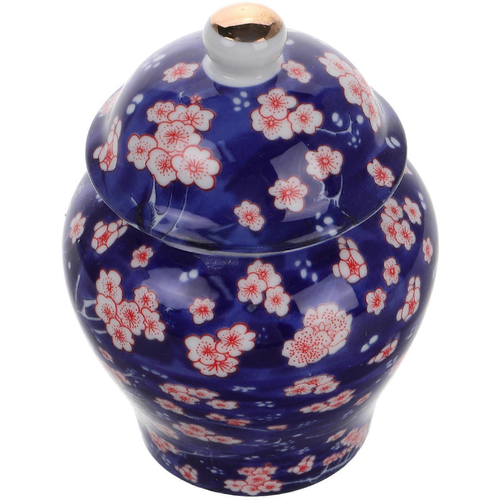 Ceramic Storage Jar Floral Pattern Decorative Canister Multi Use Storage Jar for Tea Coffee Sugar Traditional Style 1 Set