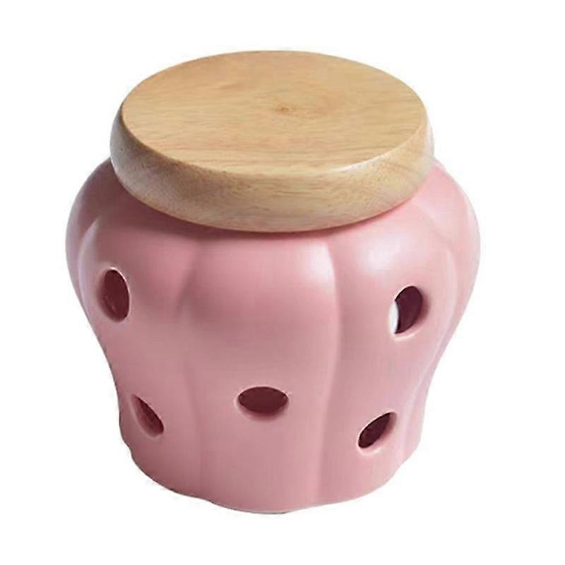 Ceramic Storage Cans Bamboo Lid Garlic Ginger Storage Tank Hollow Out Kitchen Organizer Tools Home D