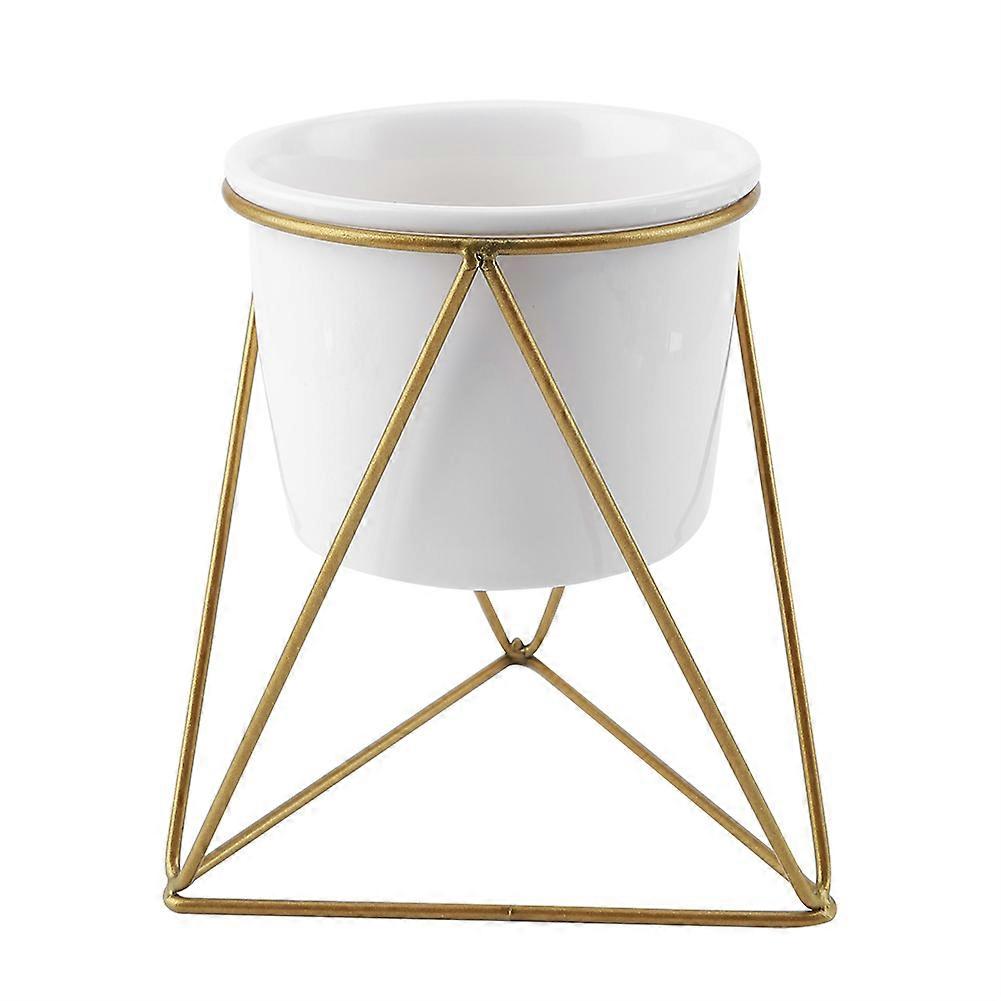 Ceramic Flower Pot and Triangle Geometric Metal Rack Plant Display