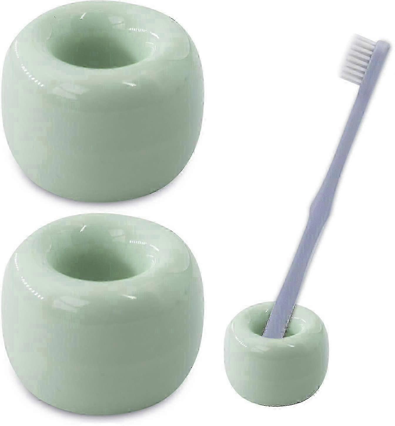 Ceramic Toothbrush Holder, Mini Bathroom Organizer, 2-Piece Set, Bright Green