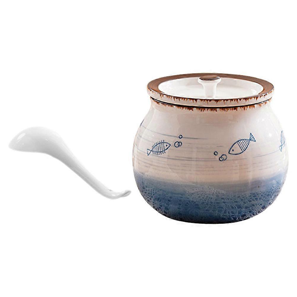 Ceramic Airtight Container Family Use Round Shape 15cm Diameter Dust-Proof Design Glass Jar 1Pcs