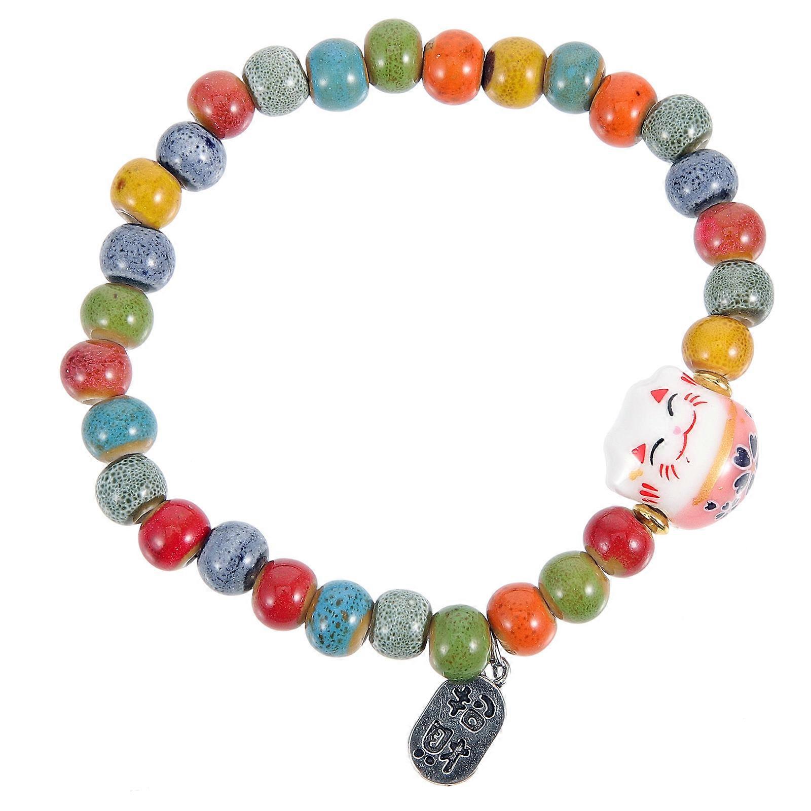Here's a polished and professional product description for your **Ceramic Cat Beaded Bracelet**: **Ceramic Cat Beaded Bracelet for Women – Cute