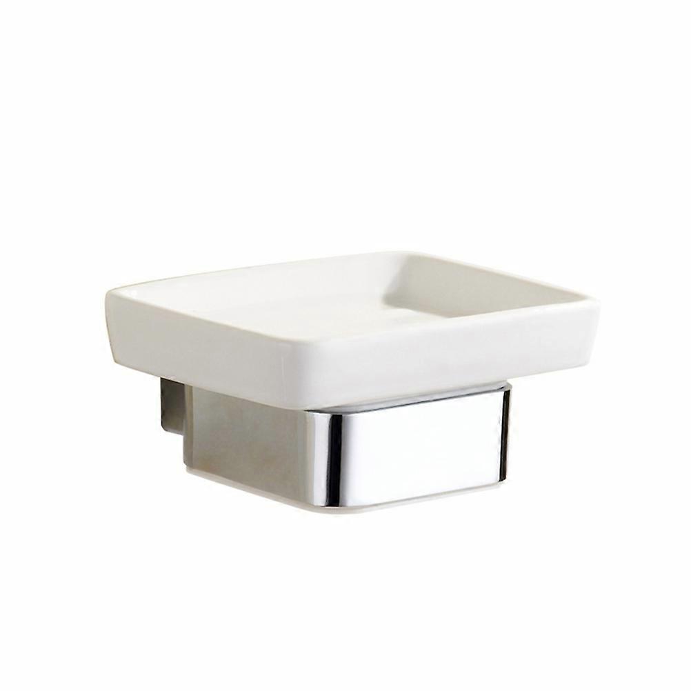 Wall Mount Soap Holder with Ceramic Dish and Zinc Alloy Stand for Bathroom Silver 3.5 x 2.8 x 4.3 Inches