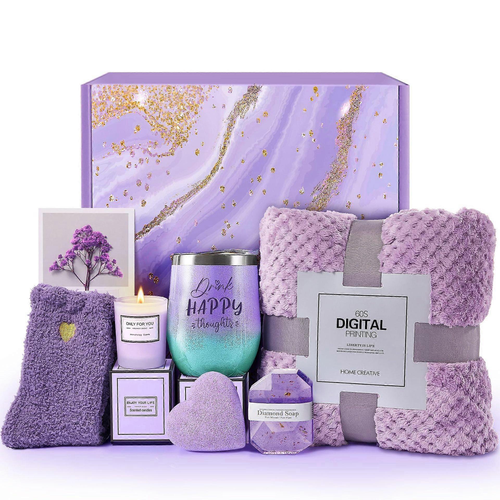 Self Care Gifts, 11pcs Relaxing Spa Gifts Basket Care Package Birthday Gifts for Women Purple