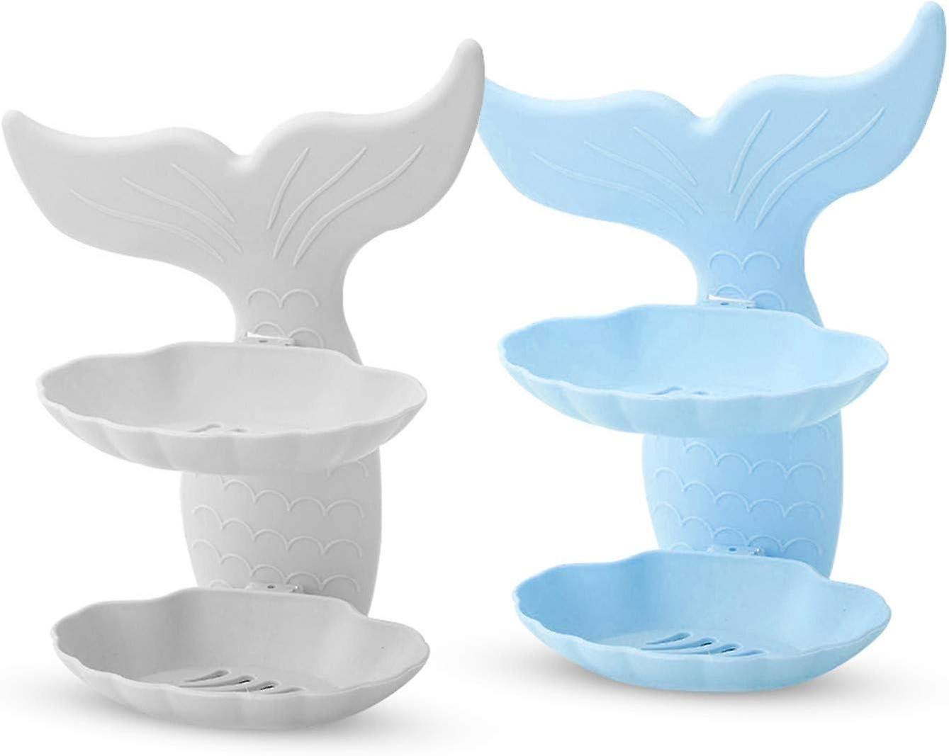 PREMIUM MATERIALS: The soap dish is made of high quality PP material and has a longer service life than ordinary plastics. It is modern, strong, healthy, ecological, durable, simple and generous, easy to clean and detachable. Unique Design: Double drain fishtail convex countertop design, chic and modern. QUICK DRYING & QUICK DRAINAGE: The bottom drainage device is designed to prevent bacteria growth and prevent soap from melting. Easy to Install: This soap dish does not require drilling holes in walls or tiles. With a powerful suction cup, it can be firmly installed on the wall without fear of falling. Super easy to install and perfectly supported. Easy to clean: Drainage panel, easy to clean, remove excess soapy water at any time to prevent the soap from softening, Keep the soap box dry and keep the bathroom clean and beautiful. Widely Used: The soap dish is suitable for all clean, smooth, flat and non-porous ceramic tile, glass, stainless steel surface, etc. Features: 1.Our soap dish is made of PP. Healthy, ecological, durable, simple and generous, easy to clean and detachable, resistant to drip and long life. 2.No need to drill holes, strong adsorption force and not easy to slip. 3.The bottom drain is designed to prevent the growth of bacteria and the soap will not melt. 4.Adopt the double drain fishtail shape design to make the soap dish a cute decoration and add fun to your life. Tips: 1: It should be installed on a smooth surface, such as ceramic tile, metal surface, glass, wood, etc. 2: For better use, please wait 48 hours after installation. Features: - Material: PP - Color: blue, gray - Size: 20.5x18x14cm / 8.07X7.06X5.5 inch - Quantity: 2PCS The package contains: - 1x blue soap dish - 1x gray soap dish