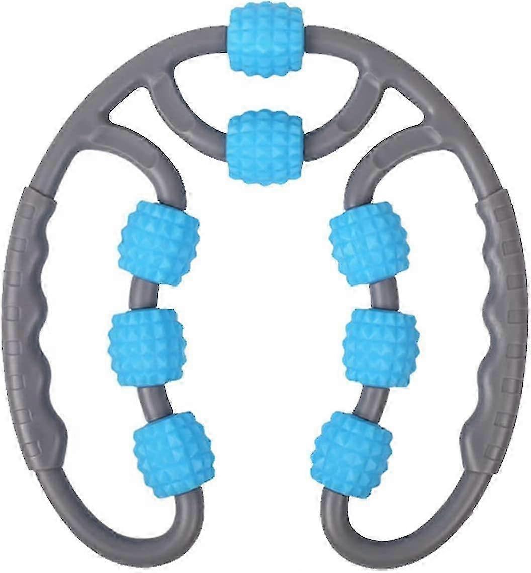 Portable 8-Wheel Muscle Massage Roller for Cellulite Relief - Blue