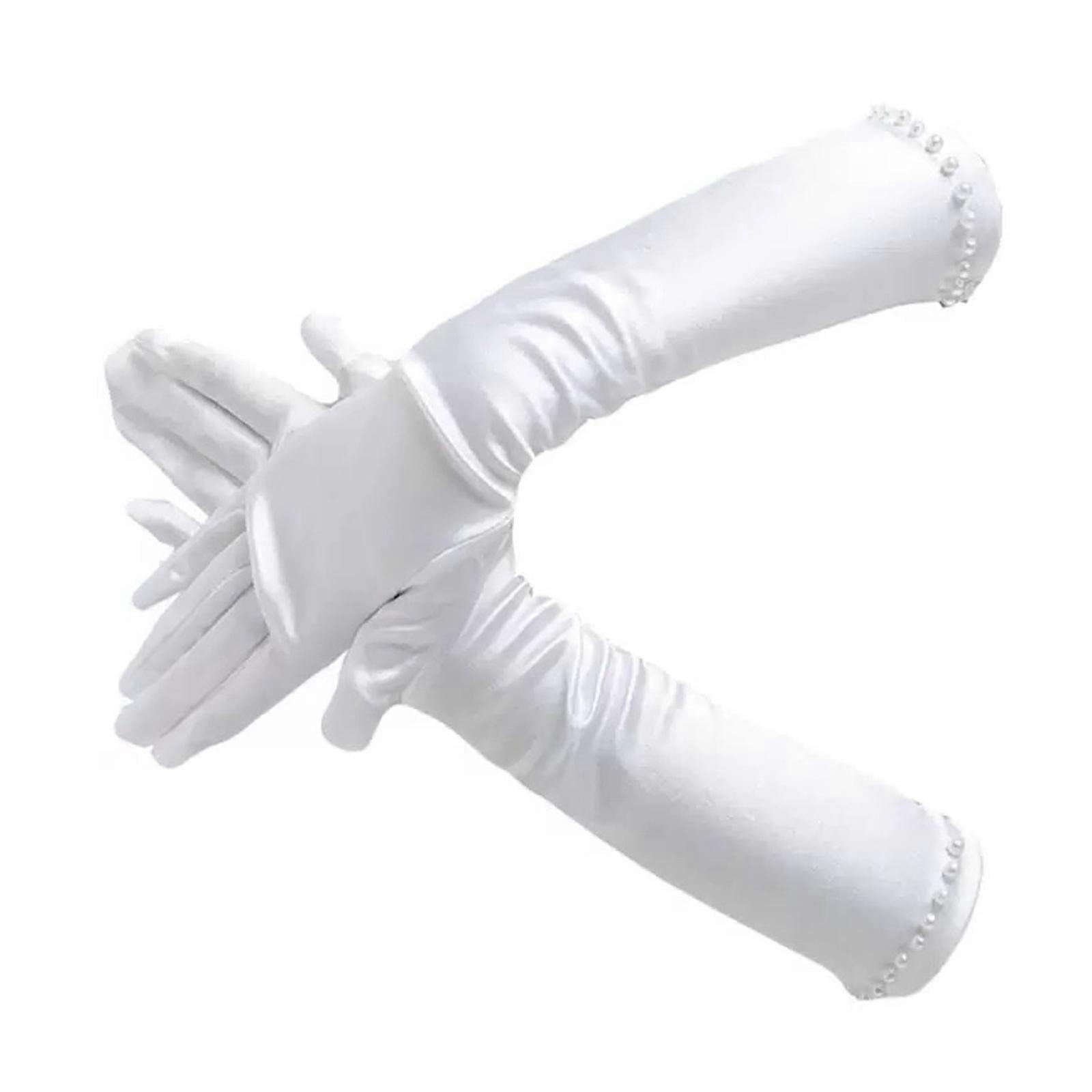 Features: Our gloves are soft and breathable, comfortable to wear, smooth to feel, and equipped with full-finger designs, which can provide protection for fingers, you can wear them for long time. Whether it's for a wedding, gala, ballroom dance, business conference, or stage performances, these gloves are the quintessential accessory for formal occasion. It is suitable for formal and informal occasion and can pair their clothes well. Application: children dance Performances, traffic policeman commander, drummer, handling valuables. It can also be used to teach your children to check house cleaning, coins, jewelry, photos without leaving fingerprints on these. Good accessory for home. Specifications: Component: Polyester Size: Approx.31cm/11.20inch Quantity: 1 Pair Package Includes: 1 Pair Gloves note: 1.Please allow 1-2cm errors due to manual measurement, note that you do not mind before you order. 2.Due to the differences between different monitors, the picture may not reflect the actual color of the item.