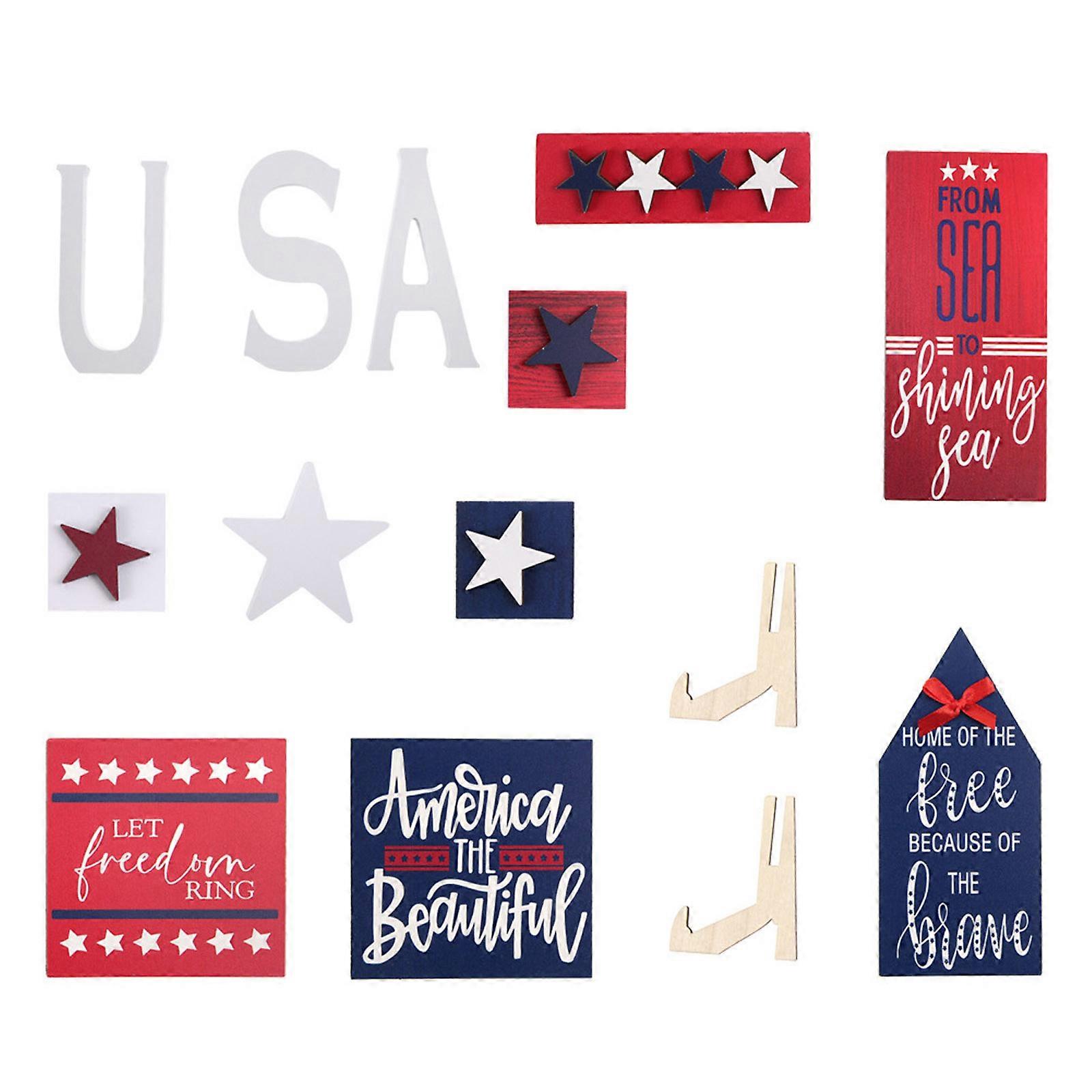 Centerpiece Tiered Tray Decor Patriotic Party Mini Rustic-Wooden Signs Summer Independence Day Farm Decorations Crafts
