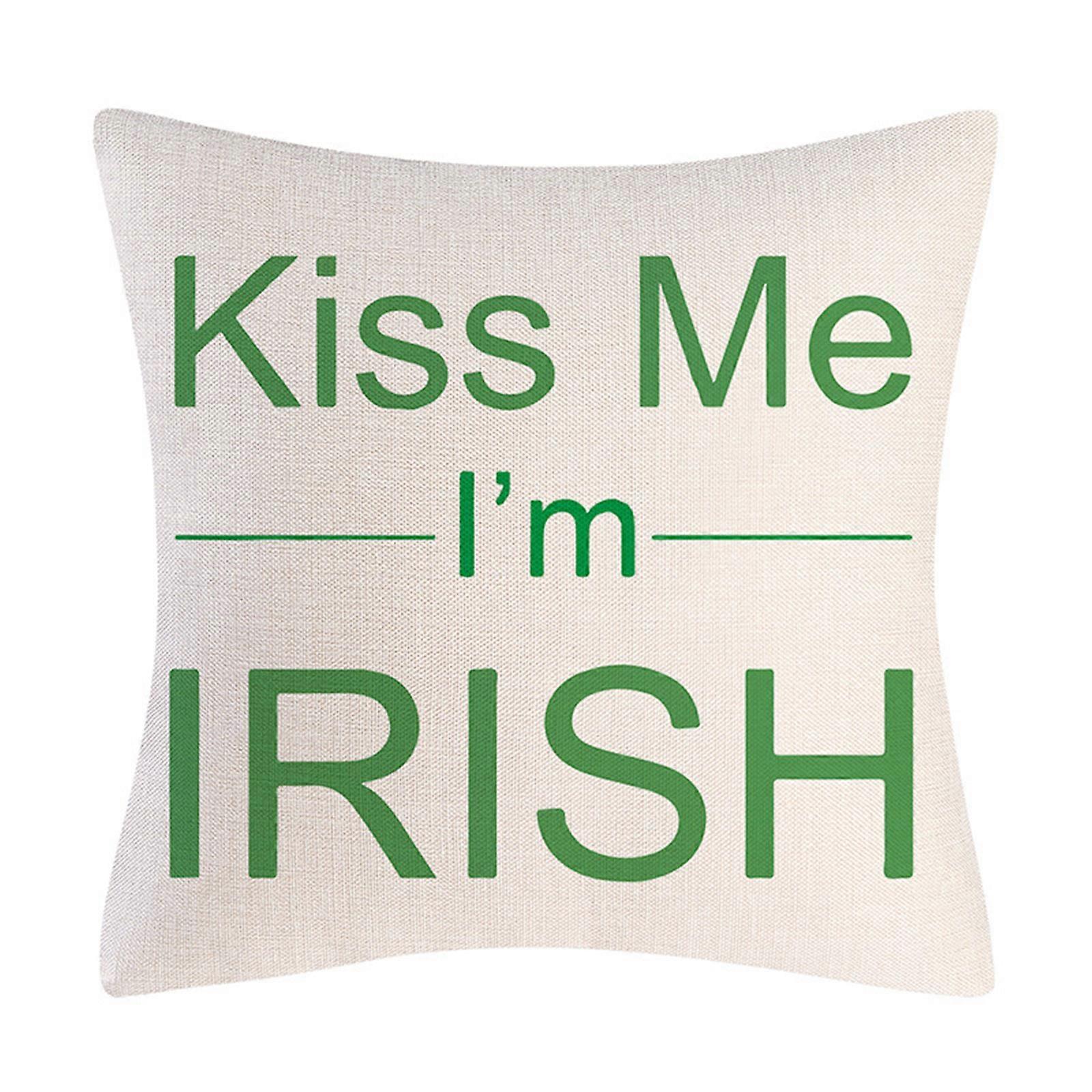 Saint Patricks Day Pillow Cover Square Linen Pillowcase Clover Letters Design for Home Bedroom Office Chair Sofa Decor