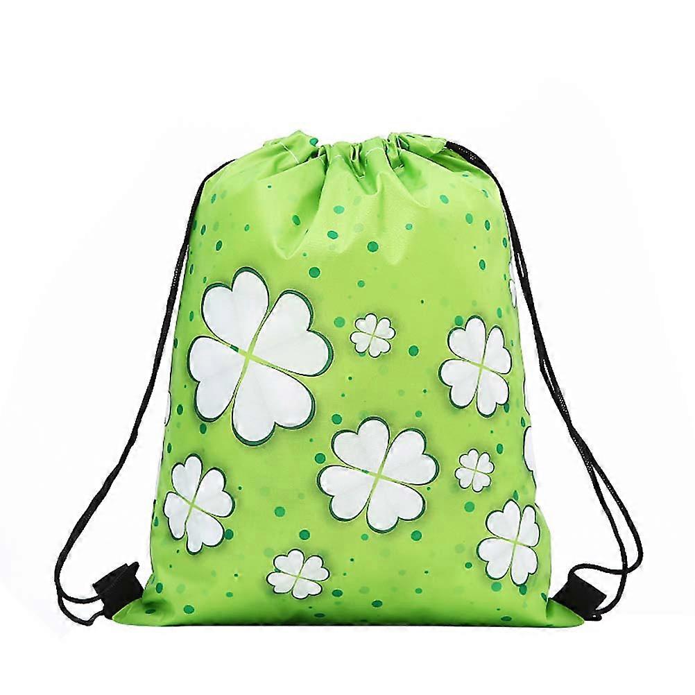 St Patrick's Day Festival Four Leaf Printed Polyester Bundle Storage Bag Christmas Gift Bag Backpack Pouch for Party Favors Candies (Random Style)
