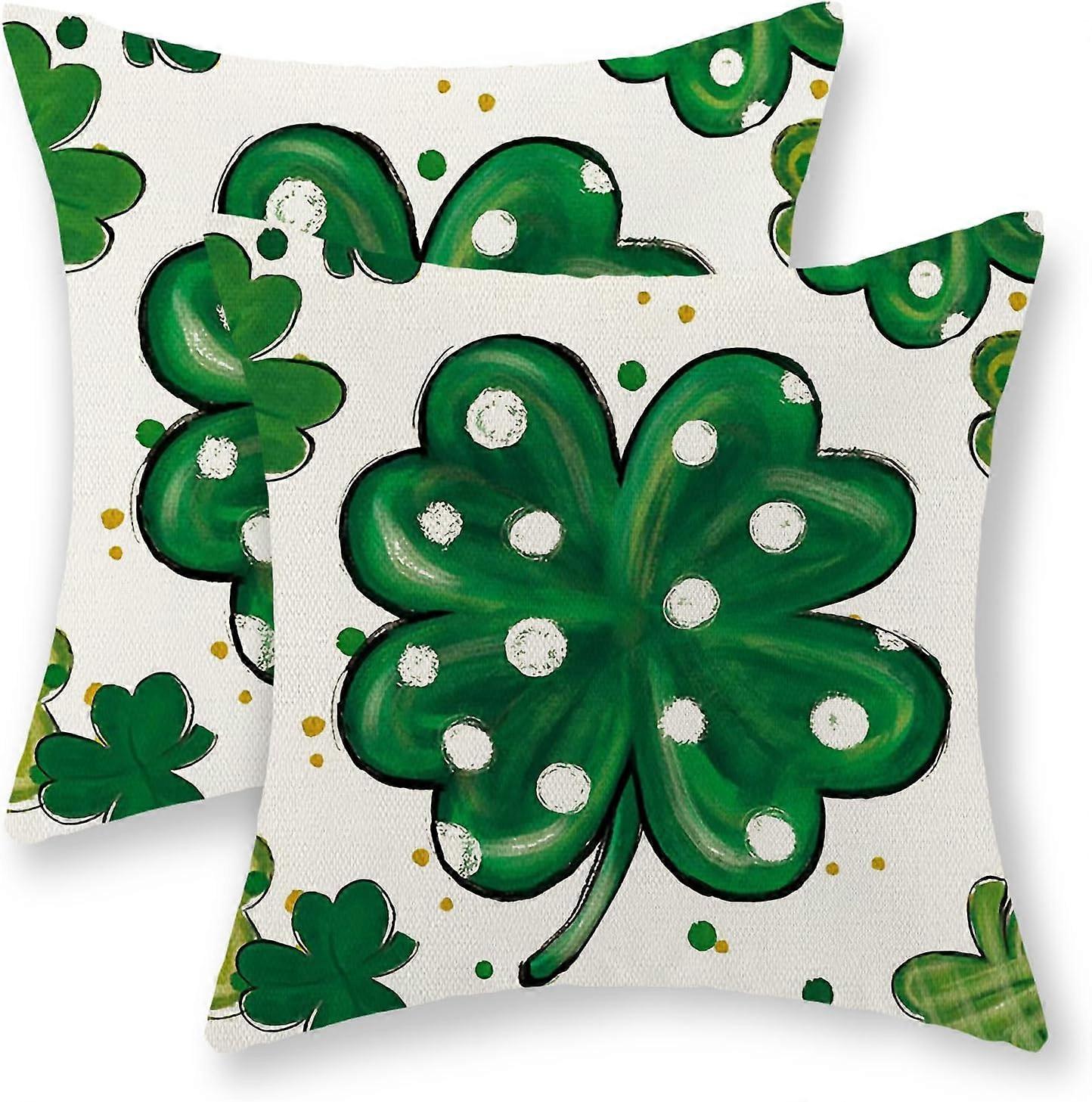 St Patricks Day Pillow Covers 18x18 Inch Set of 2, Lucky Green Shamrock Polka Dot Throw Pillows Spring Seasonal Decor Square Pillowcase Clover Decorat