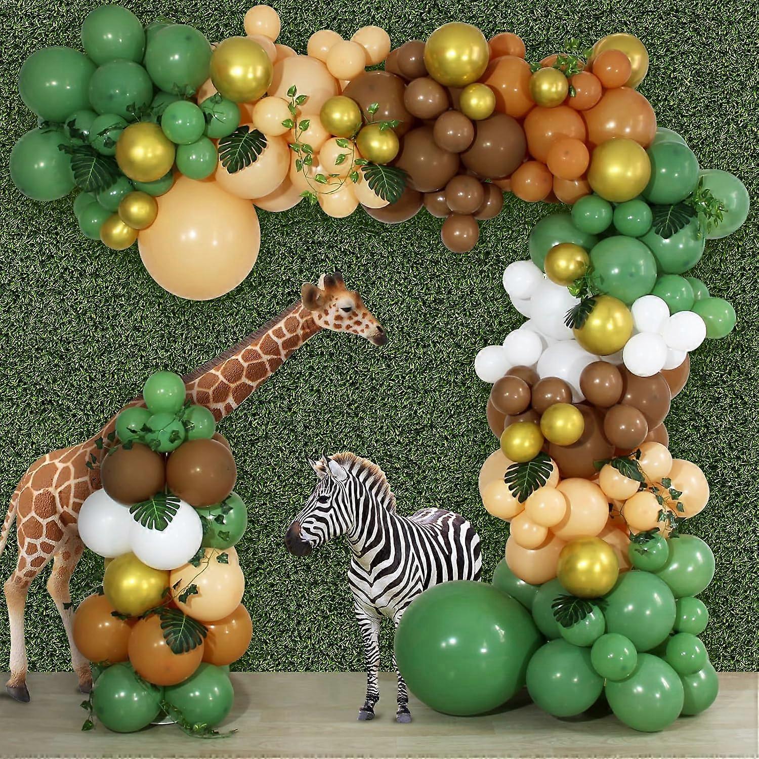 Sage Green Brown Balloon Garland Kit, Jungle Safari Wild Woodland Balloon Garland Arch, Retro Green Gold Coffee Apricot Balloons for Birthday Wedding