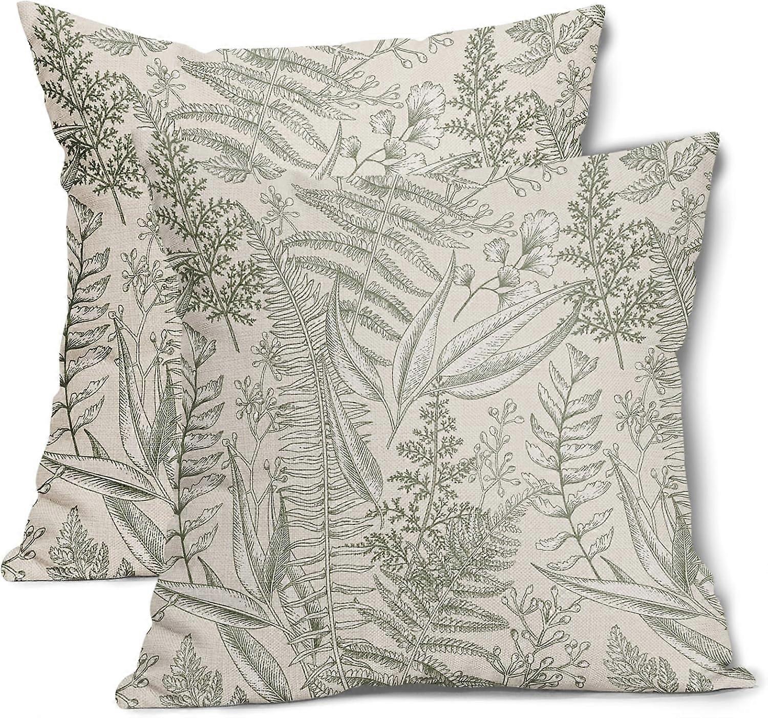 Sage Green Leaf Plant Pillow Covers 20X20 Inch Herbs Botanical Fern Vintage Leaves Floral Decorative Pillow Cases Set of 2 Cotton Linen Throw Pillows