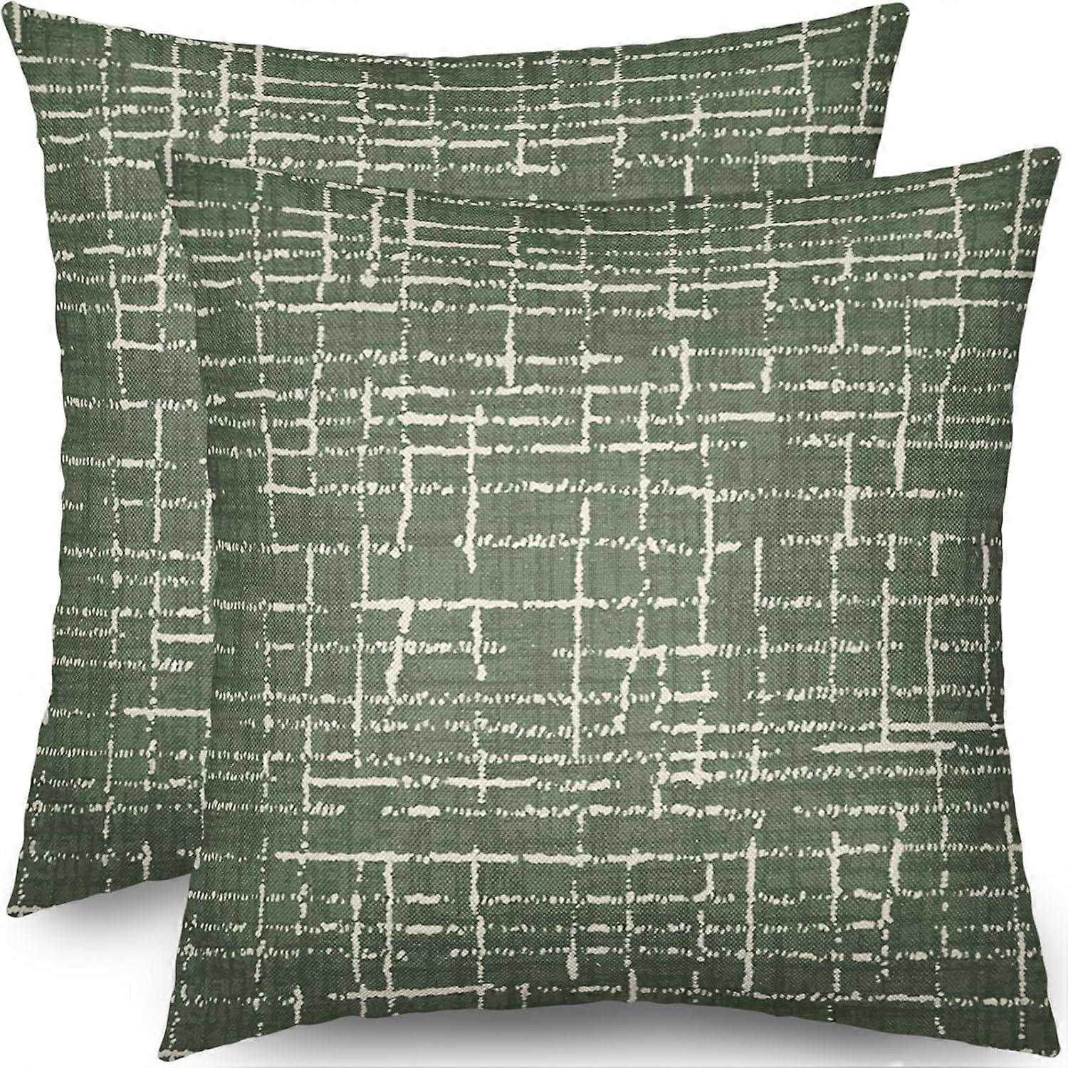 Sage Green Pillow Covers 20x20 Set of 2 Modern Green Cream Textured Pattern Block Print Decorative Throw Pillows Outdoor Pillowcases Farmhouse Style L