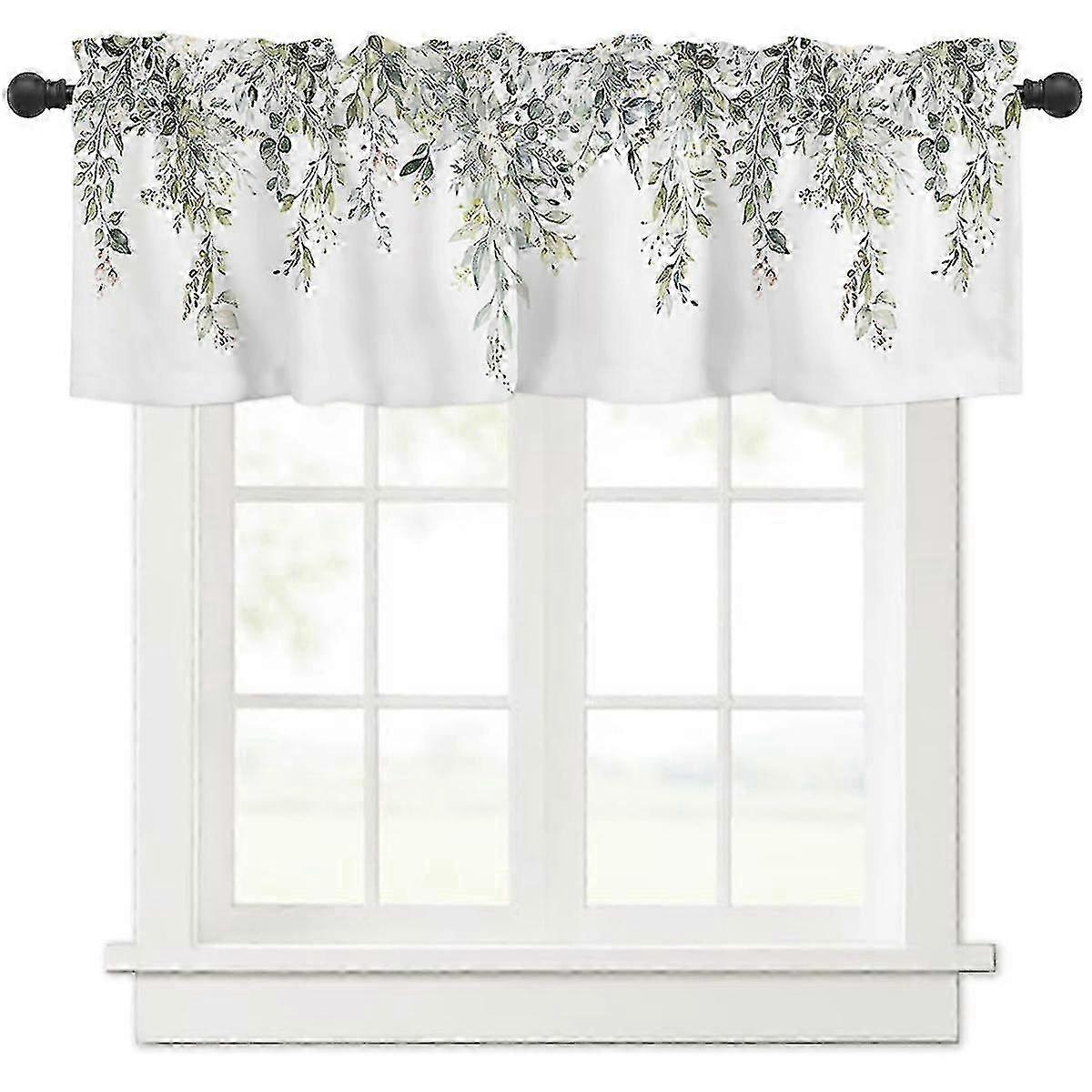 Sage Green Watercolor Eucalyptus Leaf Curtain Valance with Rod Pocket
