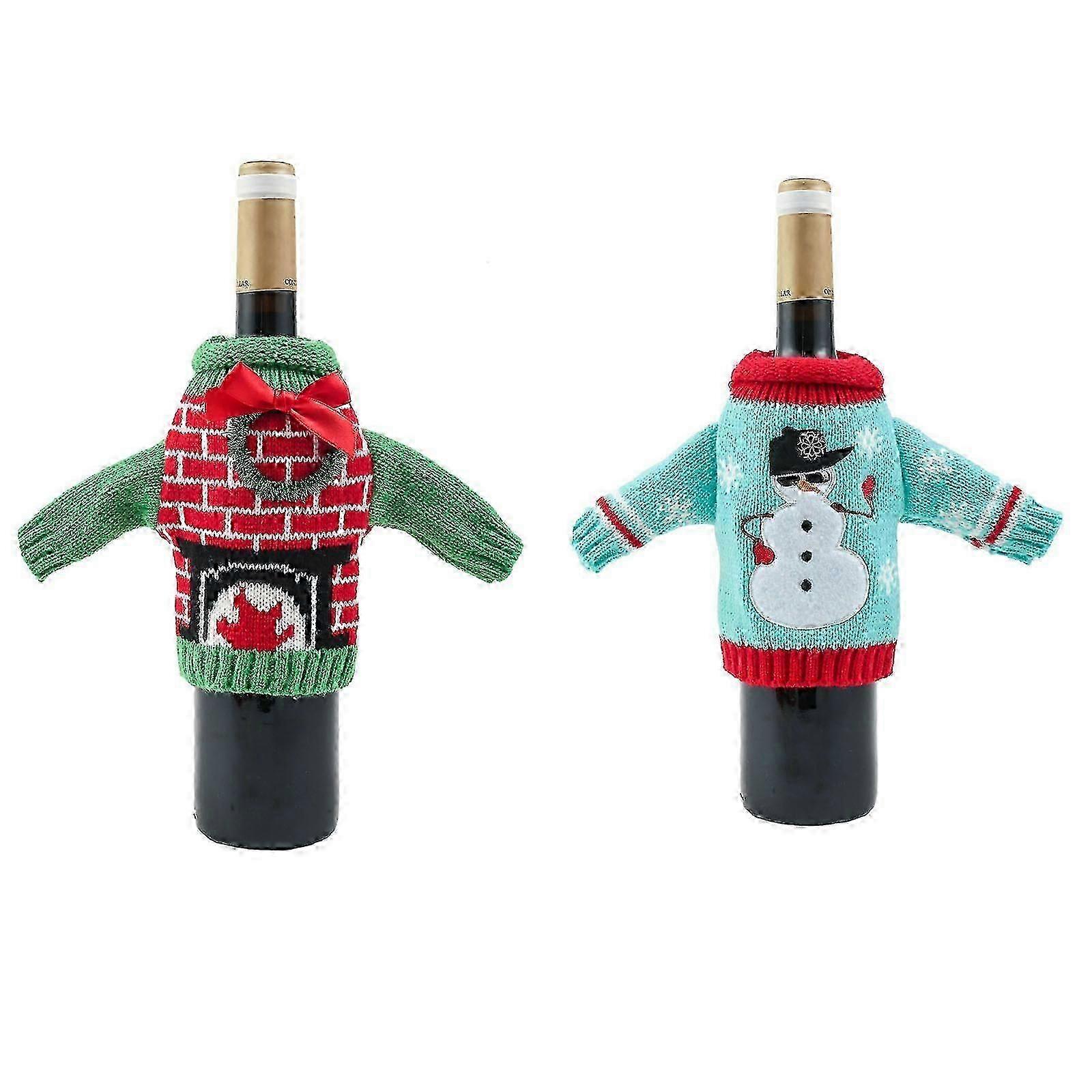 Sweater Christmas Bottle Decoration Knitted Pockets Garland + Snowman