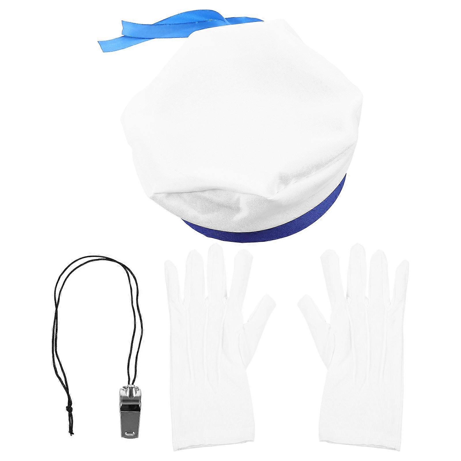 Sailor Costume Accessories Navy Cap with Whistle and Gloves for Kids Playing 1Set