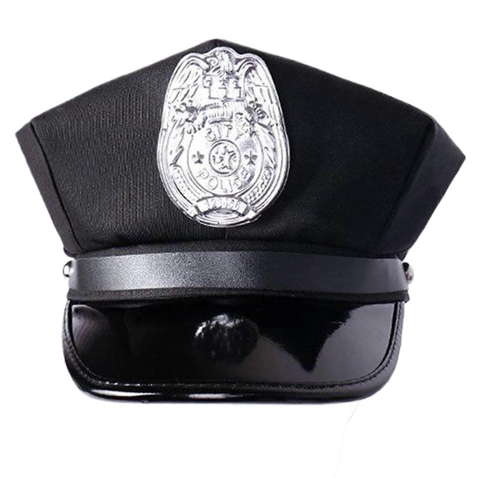 Sailor Styles Black Hat Universal Cosplay Comfortable Hat Stylish Octagonal Hat for Parties and Marine Themed Event Silver plastic label