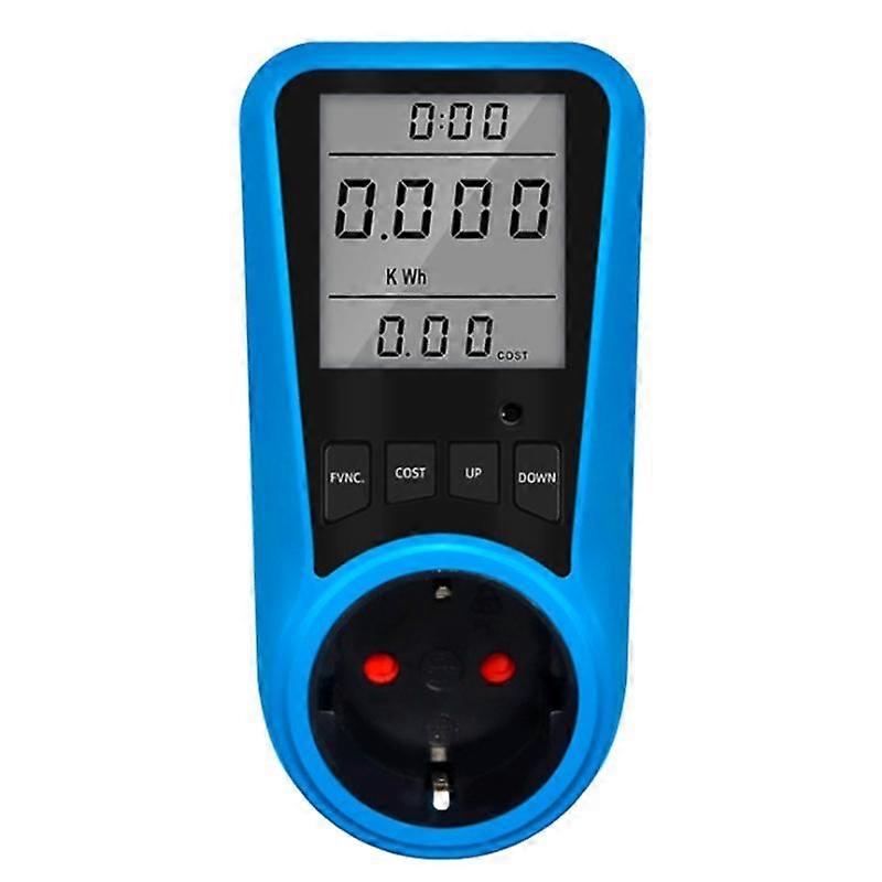 Operating voltage: 220V 50Hz for EU plug Operating current: Max 16A Wide voltage range: 220V - 250V for EU plug Voltage display range: 0V----9999V Current display (amps): 0.0----16.0A Frequency display: 0Hz----9999Hz Minimum wattage display range: 0.0W----3680W Maximum wattage display range: 0.0W----3680W Price display range: 0.000KWH----99.99KWH Total kilowatt-hour and cost display: 0.000KWH----9999KWH Plug Type:EU Plug,it applies to Indonesia, Germany, France, Spain, Italy and so on Dimensions:13 x 6.5cm Operating Temperature:Normal Accuracy Class:+/-2% Phase:single phase Model Number:Digital Voltmeter Rated Voltage:220V Power Supply:AC Display Type:Digital Only Name:Digital Current Meter Timing display range:0 second-9999 days :electric color:Blue Material:plastic Package Contents: 1 x Plug-in Power meter Only the above package content, other products are not included. Note: Light reflection and different displays may cause the color of the item in the picture a little different from the real thing. The measurement allowed error is +/- 1-3cm.