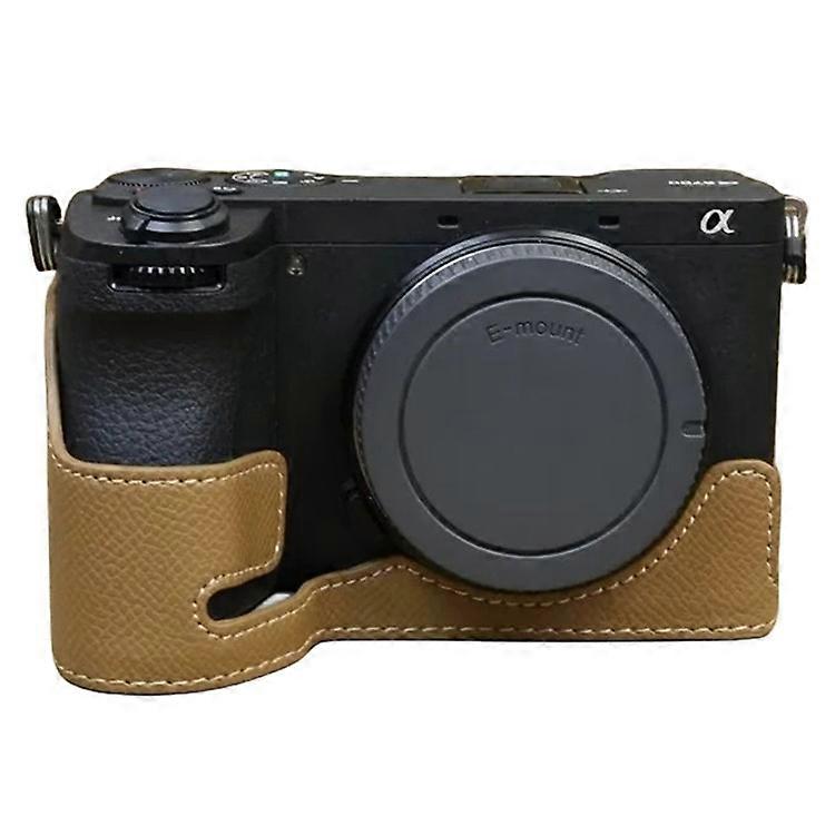 Compatible For Sony A6700 Dustproof PU Leather Camera Bottom Cover Half Body Case with Wrist Strap