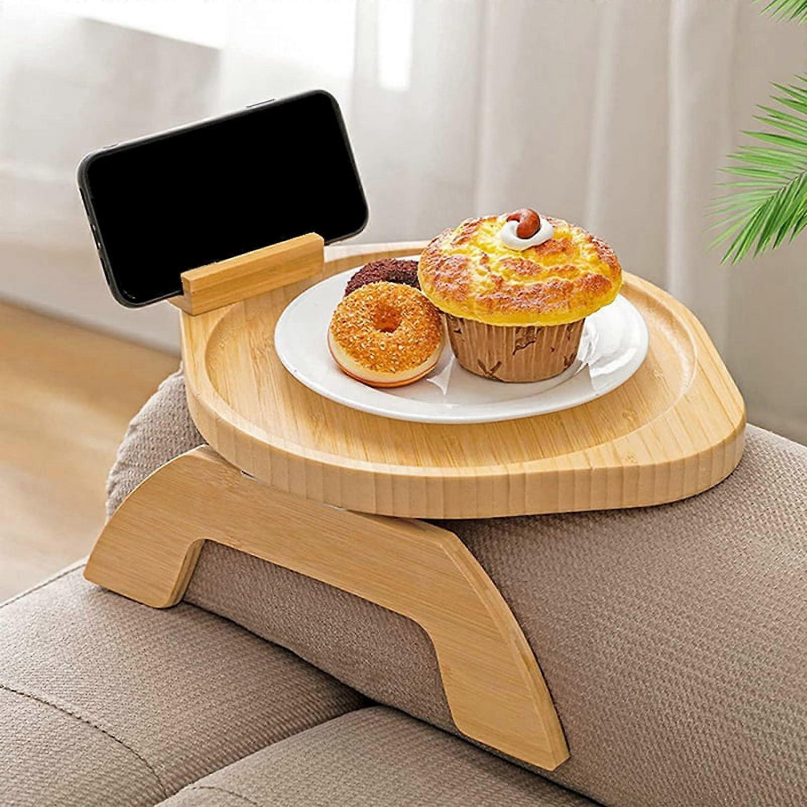 Couch Arm Table Sofa Armrest Tray Couch Arm Tray with 360° Rotatable for Eating Round