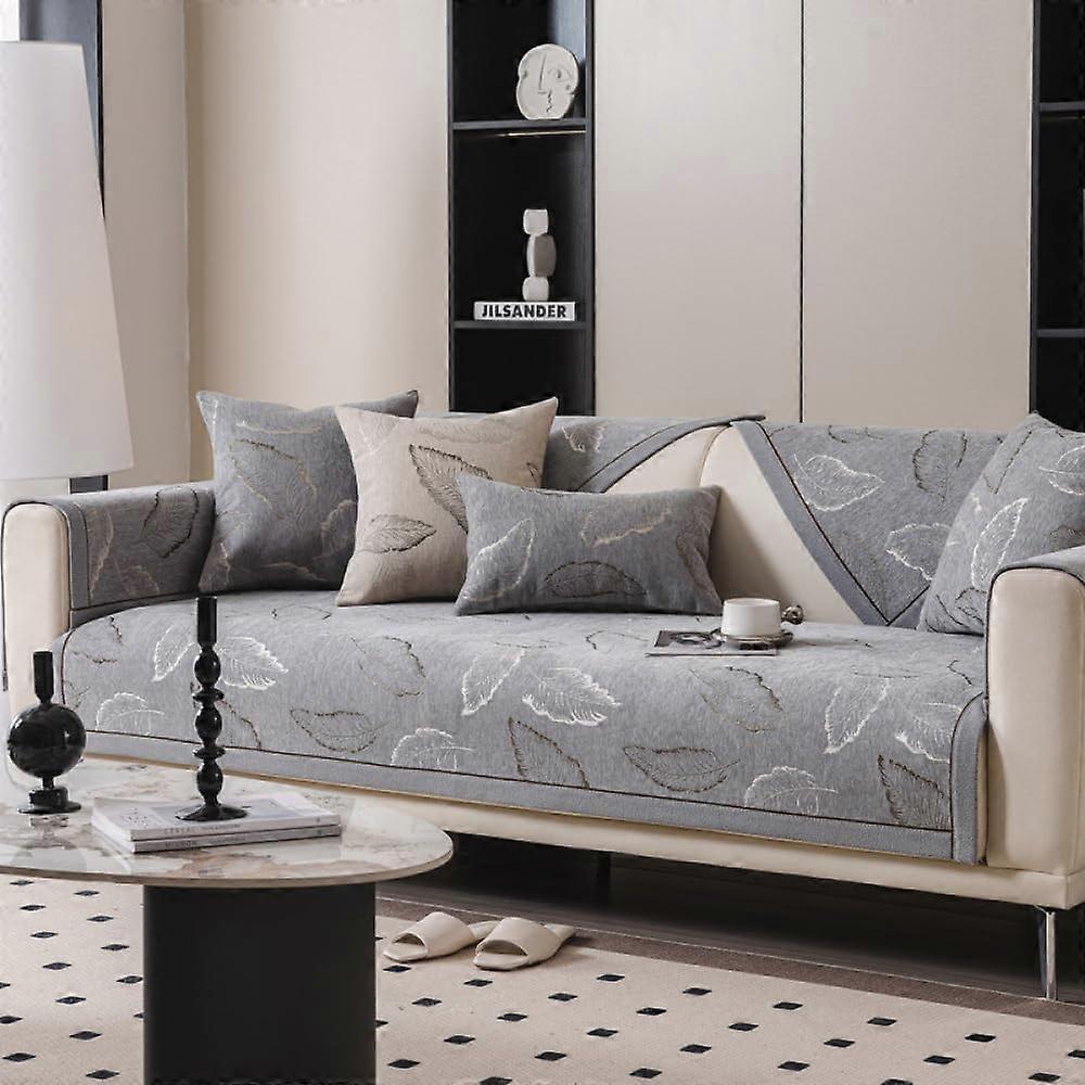 Sofa Cover Chenille Slipcovers For Corner 1/2/3/4 Seater AntiSlip Dustproof AllSeasons Gray 90x70cm