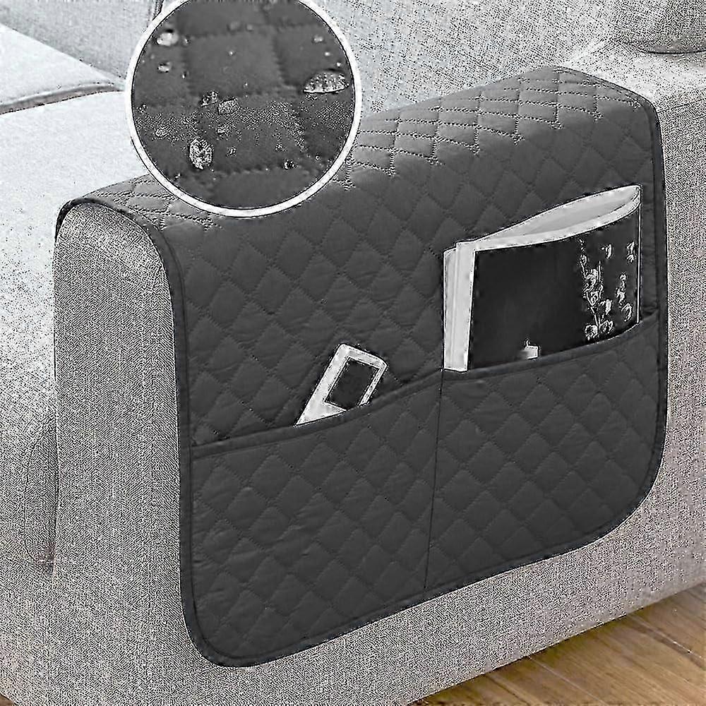 Waterproof Armrest Covers for Sofa Couch with 2 Big Side Pockets for Tv Remote Anti-Slip Durable Recliner Arm Protector Washable for Living Room (Dark