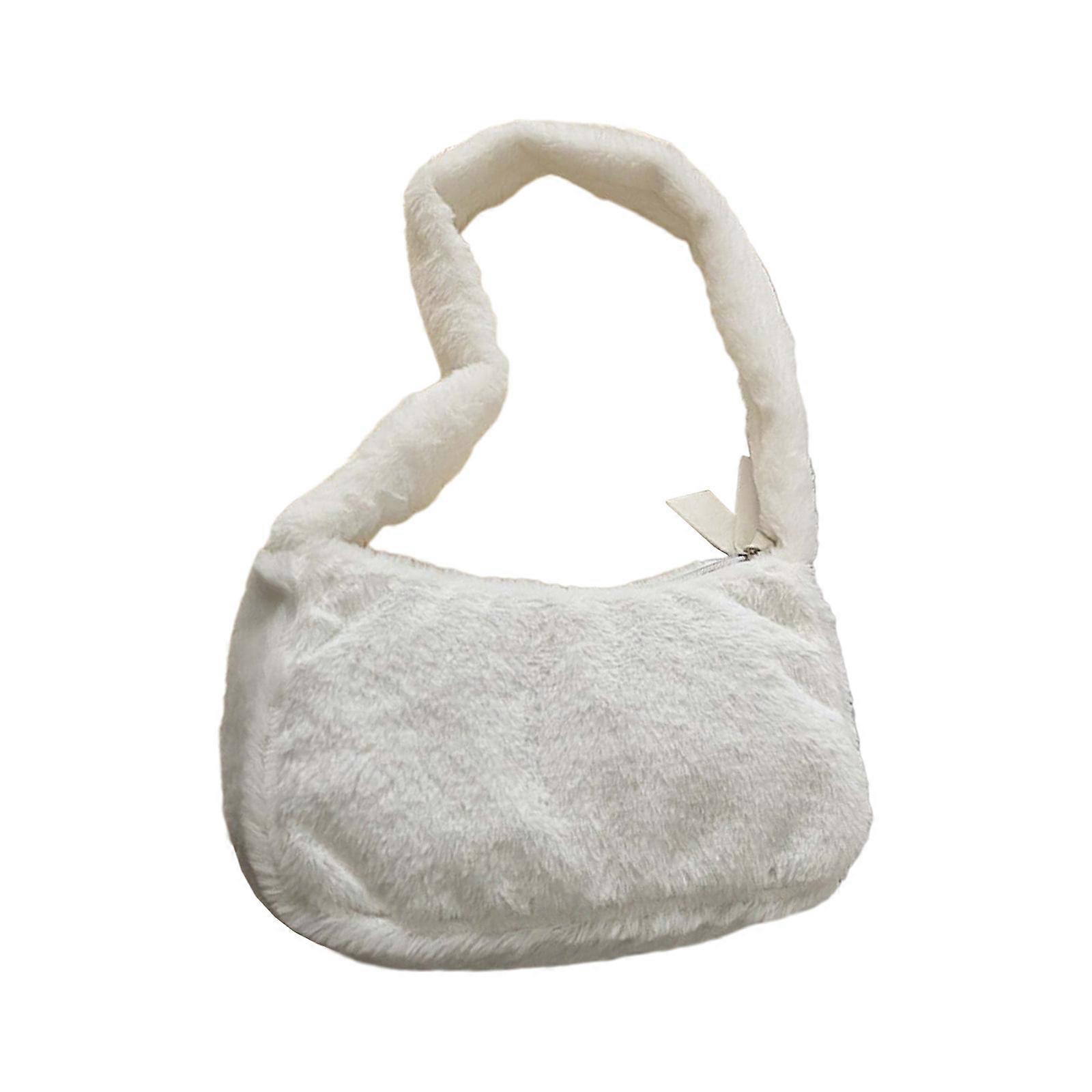 Soft Plush Shoulder Bag Chic Tote Purse Handbag Underarm Bag for Women's Everyday Needs White
