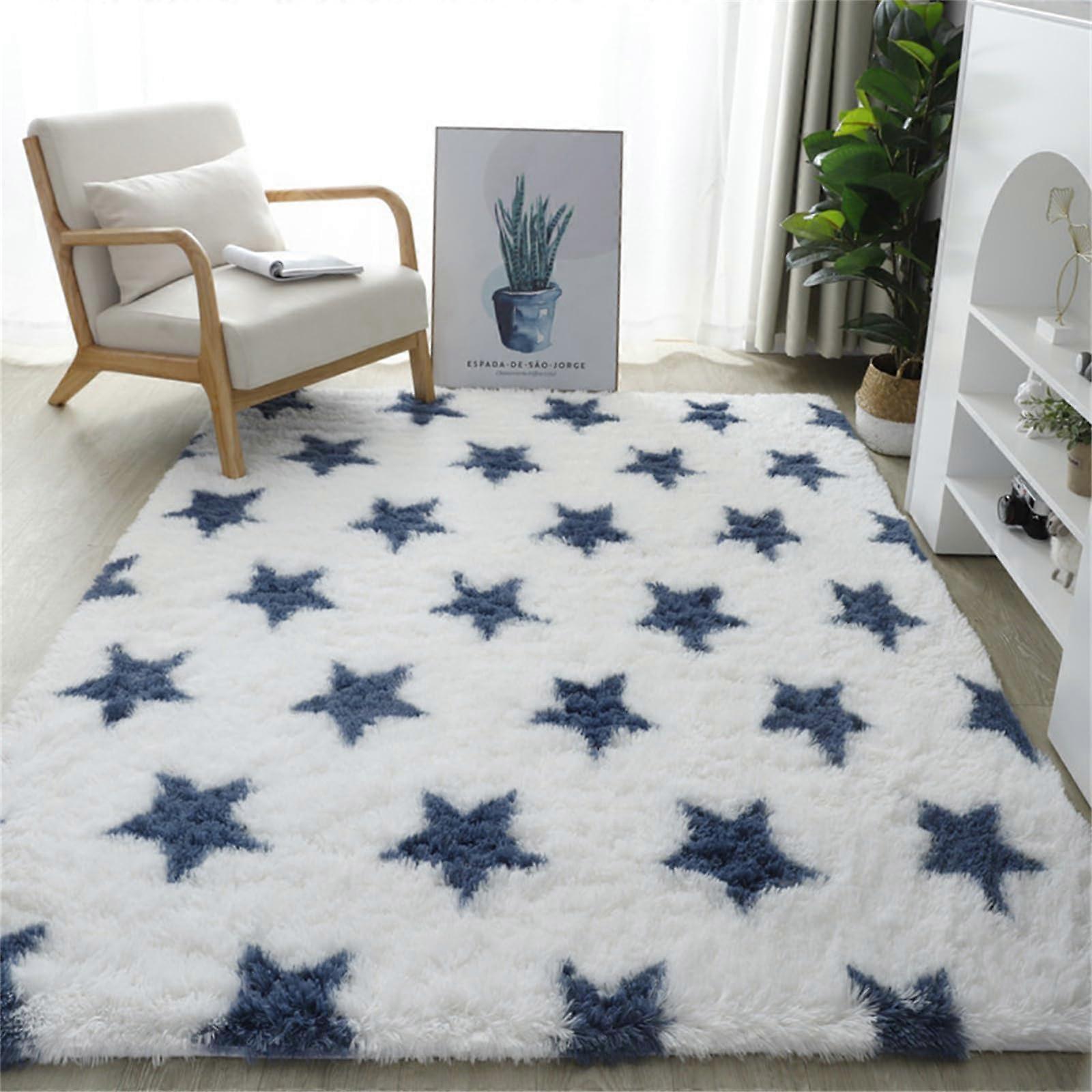 Soft Fluffy Shaggy Rug Faux Plush Area Rug 60X120CM Blue Stars Anti Slip Modern Living Room Mat For Kids Bedroom