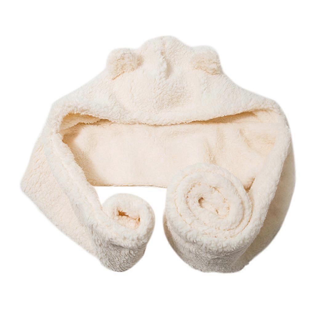 Soft Winter Warm Hooded Scarf Hat Headscarf Neckwarmer Lovely Bear Ears Fleece Plush Earflap Cap Neckerchief Wrap White