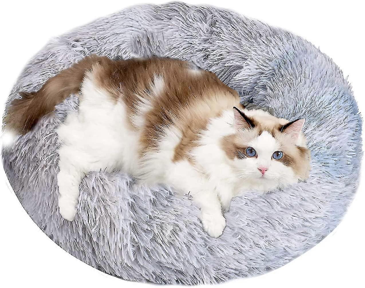Soft Cat Bed Dog/cat Stress Cushion Round Dog Bed Cat Bed Donut Bed 50cm (s) Warm For Small Dogs And Cats (light Grey)