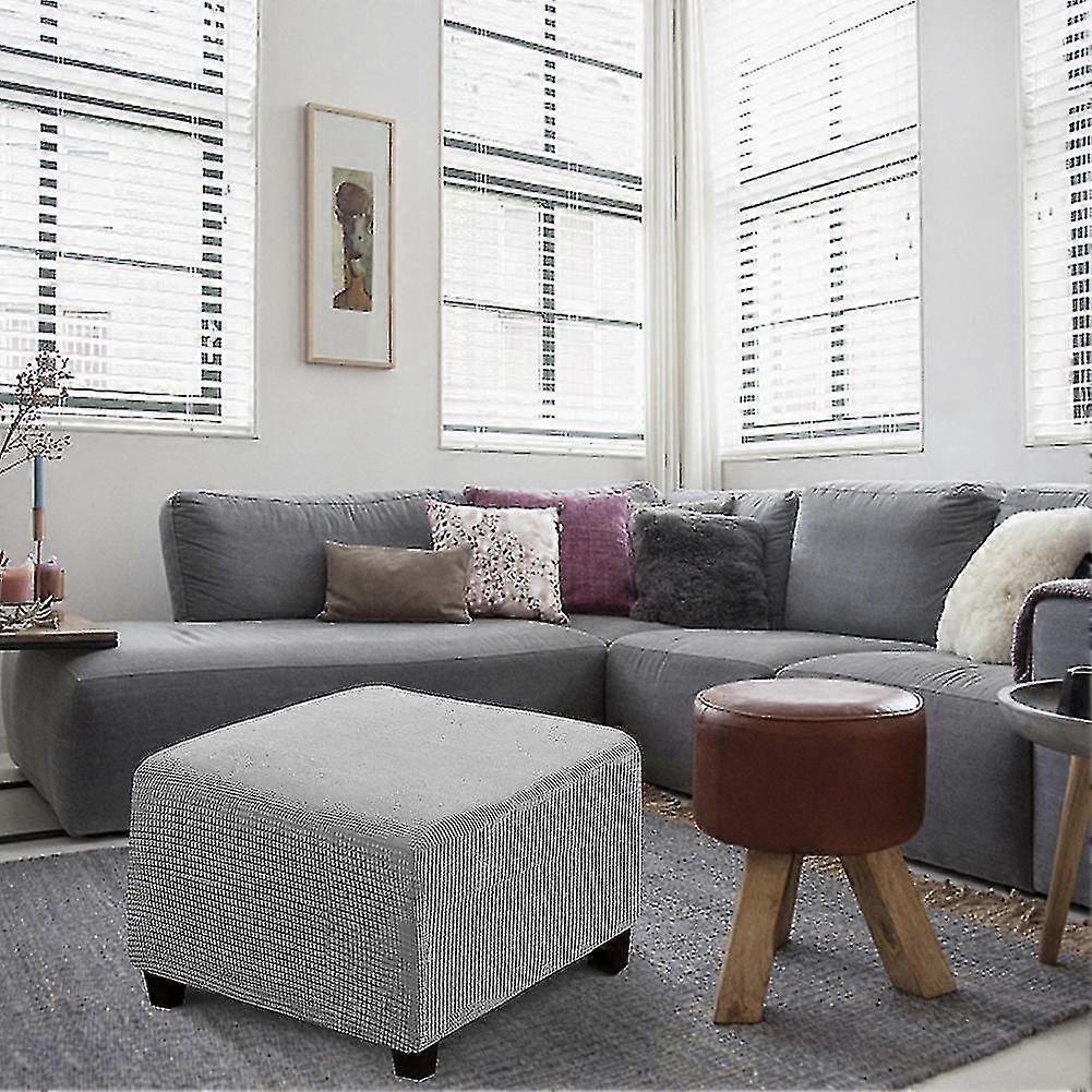 Soft Stretch Square Ottoman Cover Waterproof Elastic Bottom Accessories Non Slip L Light Grey