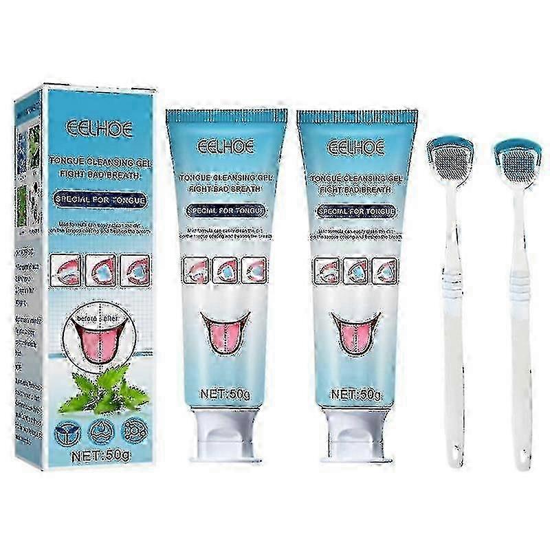 2pcs Tongue Cleaners With Soft Brush Scraper Fight Bad Breath Mild For