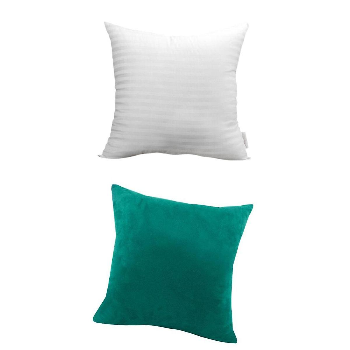 Soft Velvet Pillow Cover Solid Color & Inner Pad Case Peacock Blue-60x60cm