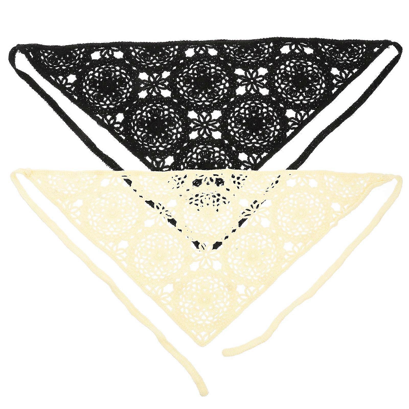 Soft Hair Bandana Headscarf Girls Women Triangular Shape Christmas Valentines Day Gift 128x24cm Black Beige 2Pcs