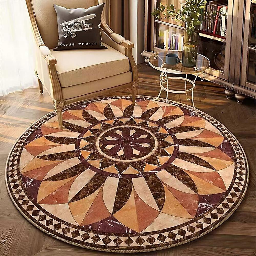 Soft Round Rug Living Room 9mm Blanket Round Rug Non-Slip Vintage Round Rug Large Washable Cotton Rug for Bedroom, Children's Room Brown