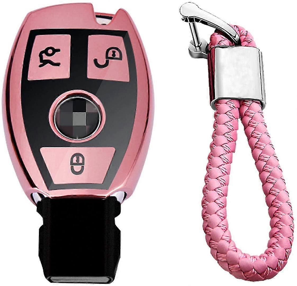 Soft Tpu Case Protector Car Remote Key Fob Cover Viano Metris - Glossy Pink - Braided Keychain