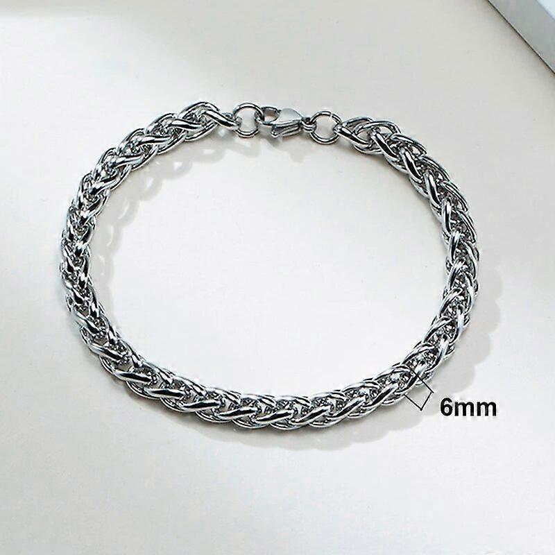 Never Fade Solid Stainless Steel Men Chain Bracelet,Heavy Metal Wheat Spiga Links Wristband, Casual Punk Jewelry,3/6/8mm