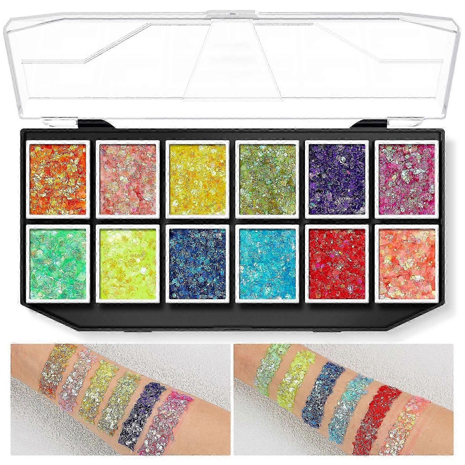 Solid sequins large capacity Makeup palette stage makeup glitter gel body painting eyeshadowFeatures:High Capacity: This solid glitter makeup palette offers a large amount of product, ensuring long-lasting use.Versatile Use: Perfect for stage makeup, body painting, and eye shadow, this palette offers a wide range of applications.Vibrant Glitter: The glitter gel formula provides a high-impact, sparkling finish that is sure to stand out.Easy to Apply: The solid glitter can be easily applied with a brush or fingers, allowing for precise and creative designs.Safe for Skin: Made with skin-friendly ingredients, this makeup palette is safe for use on all skin types.Specifications:Package size: 22.4*11.6*2.1cmPackage weight: 270gPackage List:1 * Eye shadow